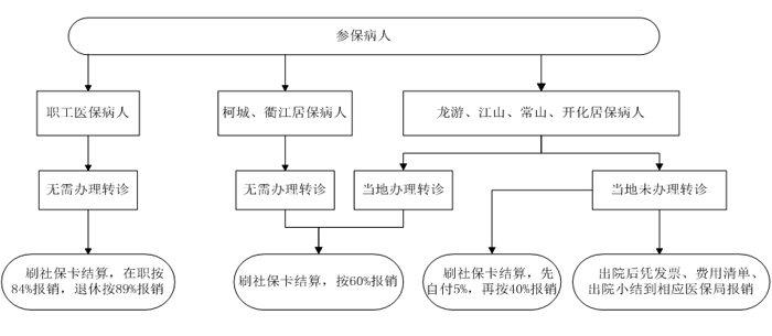 注:衢州市、柯城區(qū)、衢江區(qū)參保病人意外傷害人員,入院24小時(shí)內(nèi)必須填寫《意外傷害報(bào)告單》,并于二個(gè)工作日內(nèi)交到門診服務(wù)中心,由門診服務(wù)中心上報(bào)醫(yī)保局,經(jīng)醫(yī)保局審批同意后方可刷醫(yī)??ㄟM(jìn)行結(jié)賬。其他地區(qū)意外傷害參保病人回當(dāng)?shù)蒯t(yī)保局報(bào)銷。