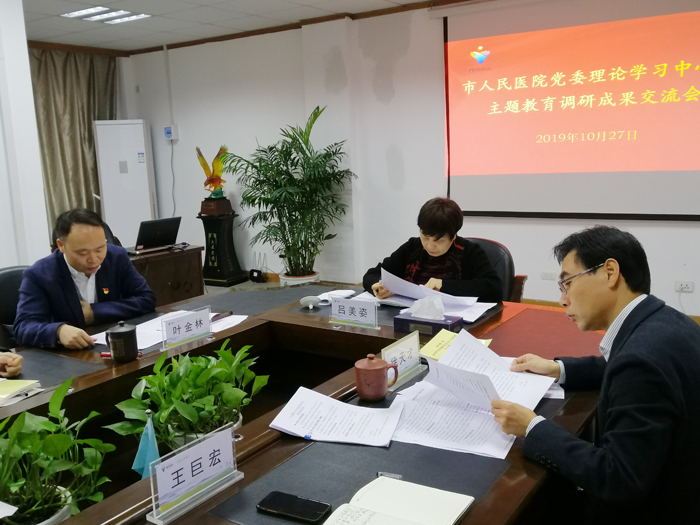 為深入貫徹落實(shí)“不忘初心 牢記使命”主題教育精神,我院根據(jù)主題教育調(diào)查研究方案于10月27日上午在行政樓三樓會(huì)議室召開黨委理論學(xué)習(xí)中心組“不忘初心 牢記使命”主題教育調(diào)研成果交流會(huì)。市衛(wèi)生健康委第一巡回指導(dǎo)組組長(zhǎng)呂美姿到會(huì)指導(dǎo)。