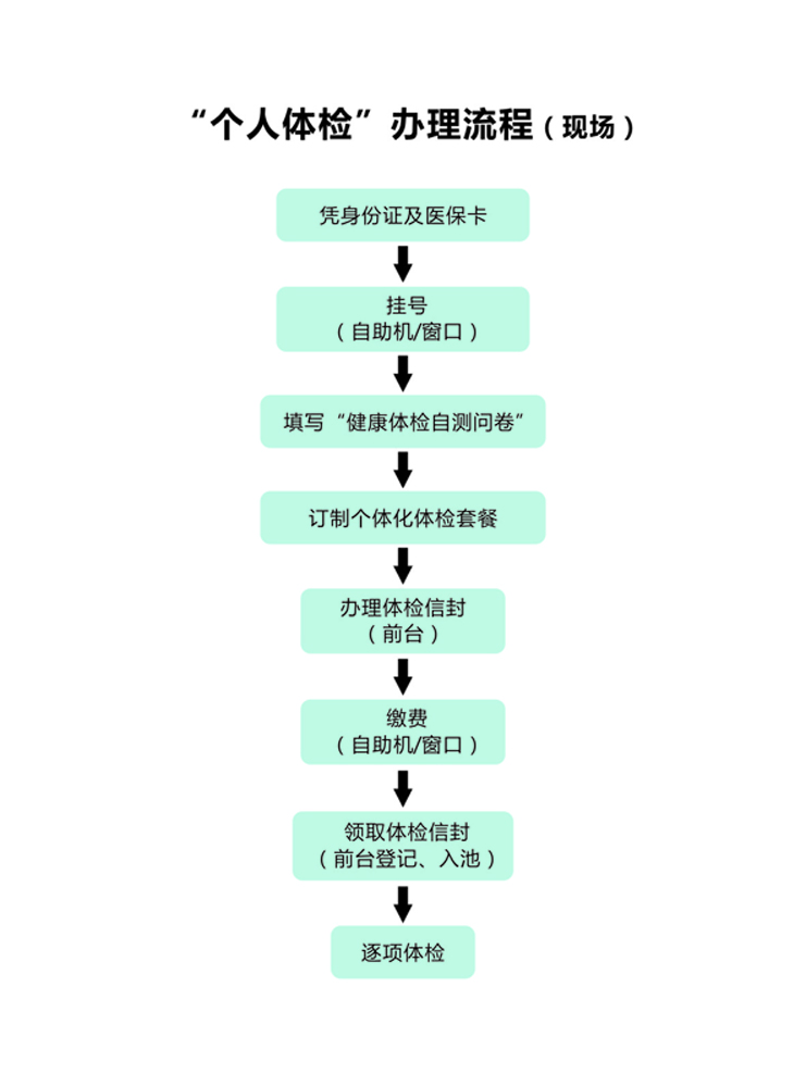 體檢辦理流程 文章來(lái)源:健康管理中心 作者: 點(diǎn)擊數(shù):14917 更新時(shí)間:2019-11-15 上一篇: 體檢,到這里!11月8日,四省邊際中心醫(yī)院健康管理中心啟用 下一篇: 2019年體檢套餐 (女)