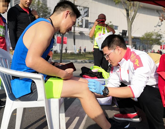 根據(jù)市衛(wèi)生健康委統(tǒng)籌安排,成立醫(yī)院應(yīng)急救治工作領(lǐng)導(dǎo)小組、院內(nèi)醫(yī)療救治小組、現(xiàn)場(chǎng)賽道醫(yī)療保障小組,共計(jì)51人的強(qiáng)大醫(yī)療保障陣容。3個(gè)醫(yī)療站點(diǎn)、2輛救護(hù)車、4個(gè)移動(dòng)AED站點(diǎn)、1輛收容車。現(xiàn)場(chǎng)共完成救治500余人次,多為處置抽筋、膝關(guān)節(jié)疼痛、肌肉酸痛、乳頭損傷、韌帶拉傷等。