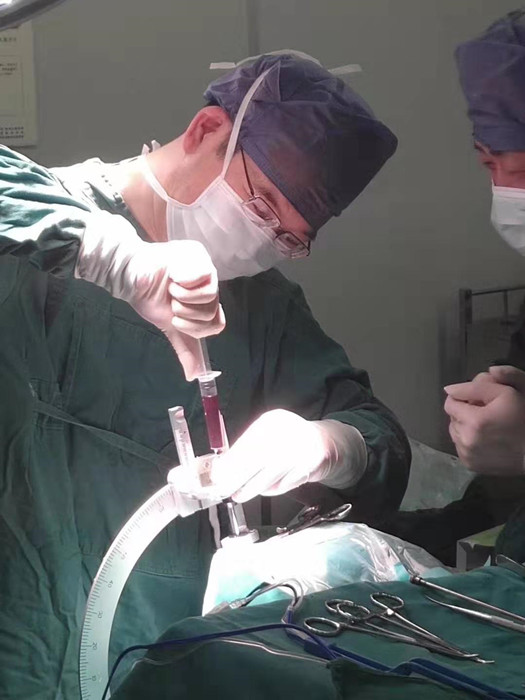 無影燈下,手術(shù)開始了。在浙江大學(xué)第二附屬醫(yī)院腦干出血專家劉鳳強(qiáng)教授的指導(dǎo)下,市人民醫(yī)院神經(jīng)外科為患者行“立體定向下腦干血腫穿刺清除術(shù)”,耗時1小時,出血10毫升,手術(shù)順利完成,抽出5毫升血塊液化的暗紅色不凝血。隨后,患者被送入重癥監(jiān)護(hù)室密切監(jiān)護(hù)。