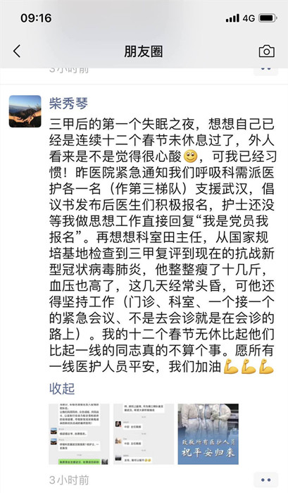“三甲后的第一個(gè)失眠之夜”,昨天,我院呼吸與危重癥醫(yī)學(xué)科護(hù)士長(zhǎng)柴秀琴在朋友圈里發(fā)的這條消息令人淚目。