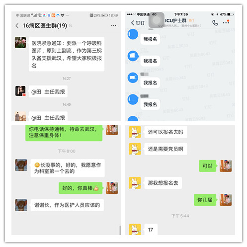 “我是黨員我報(bào)名”“我還未成家,沒(méi)有牽掛”“我不回家過(guò)年”……科室里醫(yī)生護(hù)士積極響應(yīng),短短幾分鐘,微信群里報(bào)名參加支援湖北疫情防控的隊(duì)伍不斷壯大。