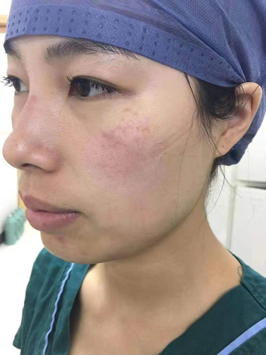 看到你發(fā)來的照片,我瞬間淚目了,昔日漂漂亮亮的姑娘,因?yàn)殚L時(shí)間穿戴防護(hù)用品,臉上硬生生被勒出道道印痕。我心疼不已……