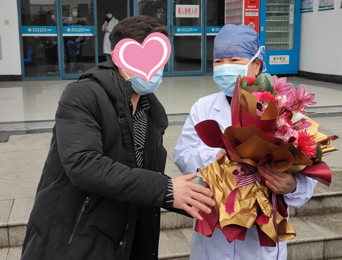 “感謝你,給了我信心!”2月7日上午,當(dāng)毛先生從隔離病房走出來后,他捧上鮮花走到我院感染科主任彭春仙面前,表達(dá)真誠(chéng)的感謝。