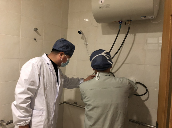 姜洪峰(左一)在病房改造現(xiàn)場
