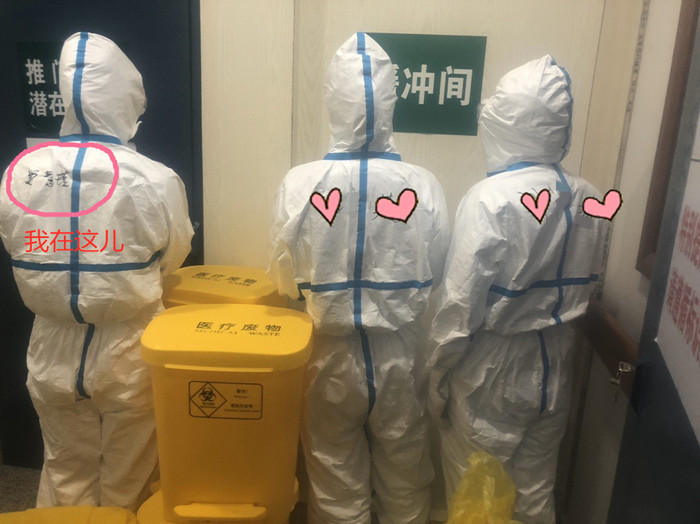 為了彼此區(qū)分,大家都在防護(hù)服后面寫上了自己的名字