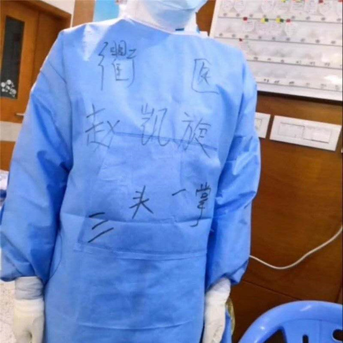 2月18日,援助武漢的第24天,趙凱旋和同在19樓的醫(yī)護(hù)人員“腦洞大開(kāi)”,紛紛把想吃的寫(xiě)在了防護(hù)服上。東坡肉、羊肉泡饃、胡辣湯……形形色色的家鄉(xiāng)風(fēng)味成了防護(hù)服上一道獨(dú)特的風(fēng)景。來(lái)自我們大衢州的趙凱旋,把衢州特色美食“三頭一掌”寫(xiě)在防護(hù)服前面。寫(xiě)的是美食,寄托的是對(duì)家鄉(xiāng)的想念。