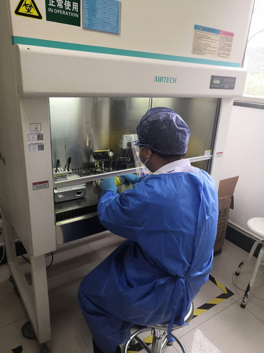 張敏波通過安全柜,為標(biāo)本統(tǒng)一裝箱