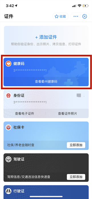 1、打開“支付寶”APP首頁,點(diǎn)擊:卡包→證件→健康碼。