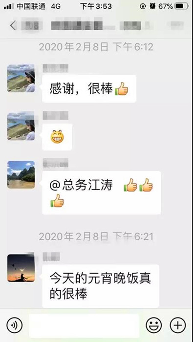 在“隔離病房后勤保障”微信群里,經(jīng)??吹浇瓭八樗槟睢保鹤罱娘嬍澈衔缚趩??護(hù)士長(zhǎng),新采購(gòu)的這款鞋子合適嗎?洗好的衣服已經(jīng)打包了,記得拿!白色的袋子在里面,紅色的袋子在外面,不要忘記!……得知隔離病房護(hù)士周仙霞女兒生日買(mǎi)不到蛋糕,江濤第一時(shí)間協(xié)調(diào)解決。一件件事雖小,卻在隔離病房醫(yī)護(hù)群里傳為美談,為他的認(rèn)真負(fù)責(zé),為他的善解人意。