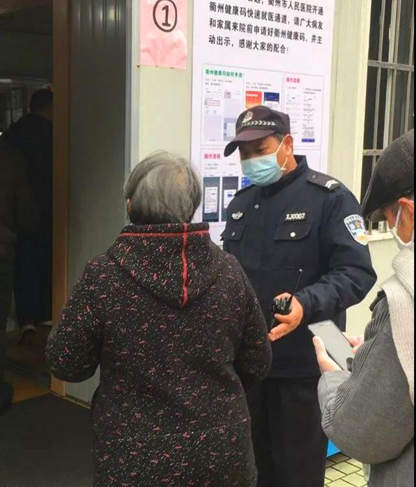 上午是就診高峰期,門(mén)診人流量大,患者和家屬進(jìn)入院區(qū)必須出示健康碼,測(cè)量體溫。此時(shí),保安師傅錢(qián)海福正在有序地指引患者和家屬進(jìn)入院區(qū)。遇到老人、小孩、孕婦,就引導(dǎo)他們優(yōu)先進(jìn)入,并耐心地給他們講解就診流程。