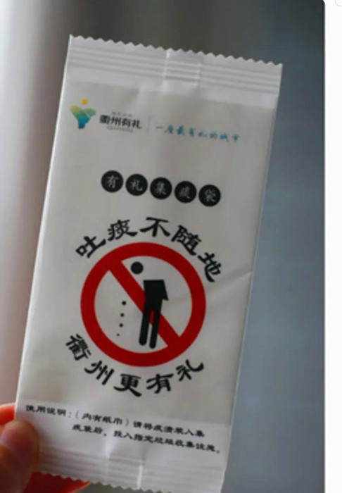 “您好,這是‘有禮集痰袋’,痰液可以吐在紙巾上。”活動(dòng)現(xiàn)場志愿者一邊給前來就診的患者及其家屬分發(fā)“有禮集痰袋”,一邊介紹使用方法,“請(qǐng)先撕開袋口,然后拿出里面的紙巾。再將紙巾包好,裝入集痰袋,最后把集痰袋扔進(jìn)標(biāo)明‘其他垃圾’的垃圾桶里?!?