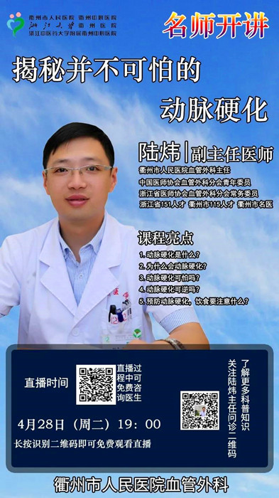 “衢醫(yī)科普,云上有約”我院血管外科云上課堂今天開(kāi)播