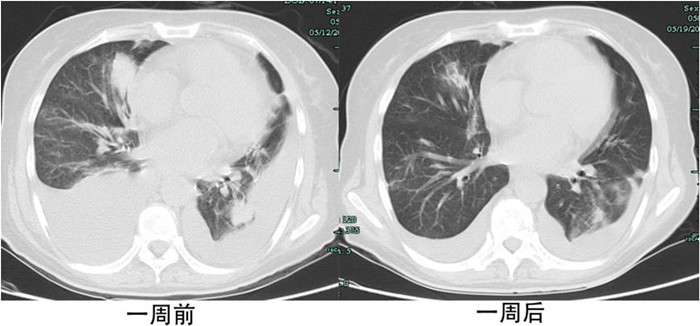 用藥一天后,劉女士咳嗽及胸悶癥狀得到了緩解,一周后,咳嗽及胸悶完全消失,兩周后雙肺的轉(zhuǎn)移病灶及癌性淋巴管炎也明顯減輕,甚至雙側(cè)胸腔積液也明顯減少。