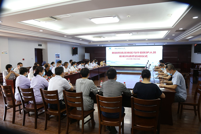 7月20日,新疆阿克蘇地區(qū)烏什縣醫(yī)護(hù)人員赴衢進(jìn)修啟動儀式暨“衢州師傅”傳幫帶活動在我院舉行,市衛(wèi)健委黨委委員、計(jì)生協(xié)會專職副會長劉文勇,市援疆指揮部人才組組長吳小偉,我院副院長徐禮鋒,援疆醫(yī)療隊(duì)隊(duì)長王之成,衛(wèi)健委相關(guān)處室負(fù)責(zé)人以及醫(yī)院相關(guān)職能部門負(fù)責(zé)人出席會議。