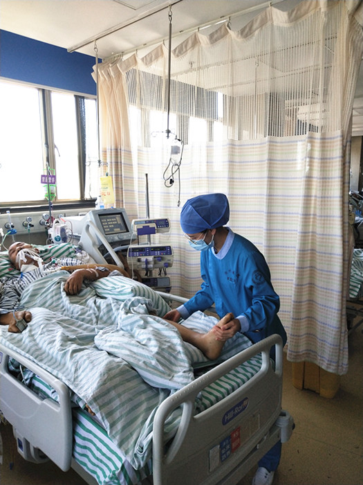 “在重癥監(jiān)護(hù)室,我們就是患者的家人。”EICU護(hù)士長徐芳芳介紹,“重癥患者的家屬不能長期陪伴在患者左右,科室里的護(hù)士們就輪流為魏老先生按摩腿腳?!毙旆挤颊f這樣的暖心接力經(jīng)常出現(xiàn)在科室。
