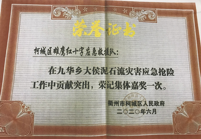 日前,從柯城區(qū)紅十字應(yīng)急救援隊(duì)傳來好消息,來自我院的王丹丹、陳國芳作為應(yīng)急救援隊(duì)隊(duì)員,積極參與九華鄉(xiāng)大侯泥石流應(yīng)急搶險(xiǎn),獲得柯城區(qū)紅十字會表彰并榮獲柯城區(qū)政府頒發(fā)的榮譽(yù)證書。