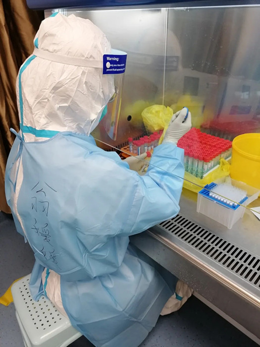 有一次,連續(xù)奮戰(zhàn)了兩個(gè)夜班,正準(zhǔn)備休息時(shí),翁媛媛所在的檢測(cè)組就接到緊急通知,有大批量標(biāo)本待檢,1小時(shí)內(nèi)出發(fā)。盡管夜班的疲憊還未散去,翁媛媛沒(méi)有二話,跟隨檢測(cè)組成員整裝待發(fā)。“12個(gè)人,8小時(shí),完成6440管樣本檢測(cè),刷新了記錄?!笔展さ臅r(shí)候清點(diǎn)樣本數(shù),翁媛媛所在的檢測(cè)組創(chuàng)造了標(biāo)本檢測(cè)最高記錄。