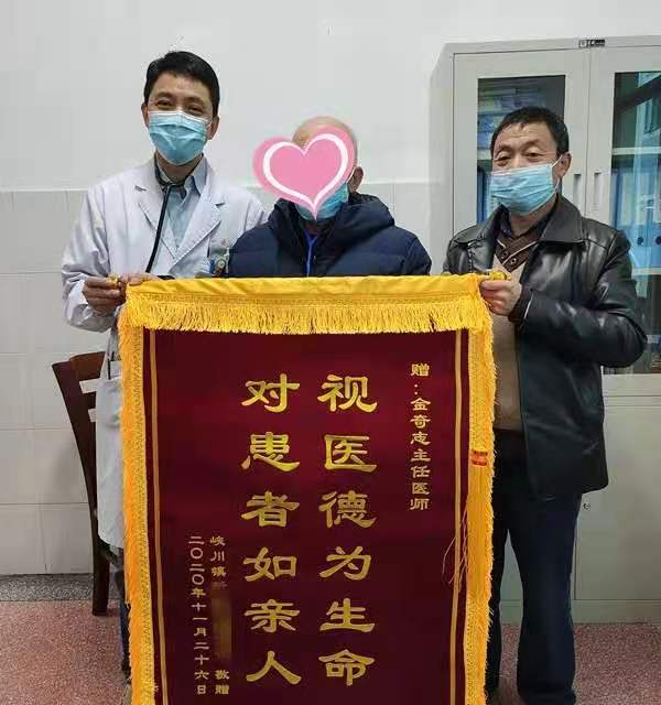 不久前,老人在家屬的陪同下來(lái)到醫(yī)院,特地給金醫(yī)師送來(lái)錦旗。得知金醫(yī)師正在綜合病房會(huì)診,又輾轉(zhuǎn)而來(lái),要親手把錦旗送到,說(shuō)聲感謝?!爸x謝你,你是老爺子的救命恩人!” 姚老先生的家人對(duì)金奇志精湛的醫(yī)術(shù)嘖嘖稱贊,“老爺子今天特意戴了黨徽,向金醫(yī)師表示一名老共產(chǎn)黨員最崇高的敬意?!?