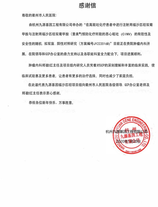 感謝信(致衢州市人民醫(yī)院) 文章來源: 作者: 點(diǎn)擊數(shù):6115 更新時(shí)間:2020-01-20 上一篇: 感謝信(致衢州市人民醫(yī)院) 下一篇: 感謝信(致張承亮、江菲菲醫(yī)師)