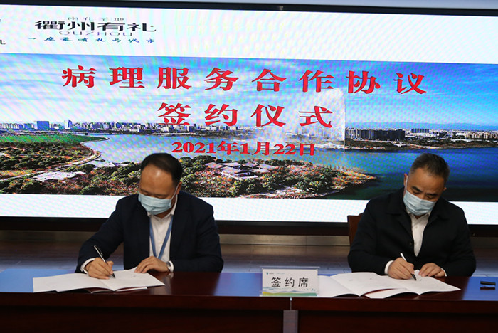 我院與市中醫(yī)醫(yī)院、市婦保院分別簽訂病理服務(wù)合作協(xié)議
