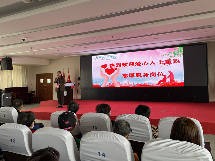 4月16日下午,我院2021年度志愿者培訓(xùn)會(huì)在門診五樓學(xué)術(shù)報(bào)告廳舉行,近百名社會(huì)志愿者參加培訓(xùn),門診部主任邵微穎主持會(huì)議。