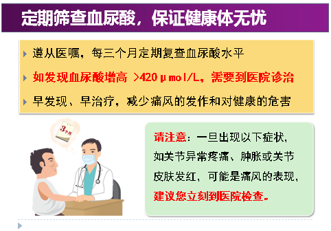 “高尿酸是吃出來的慢性病,和平時(shí)暴飲暴食,缺乏運(yùn)動(dòng)有很大的關(guān)系?!焙瘯熖嵝?,高尿酸并不可怕,只要正確認(rèn)識(shí)、科學(xué)生活、藥物配合,都能達(dá)到不錯(cuò)的效果。