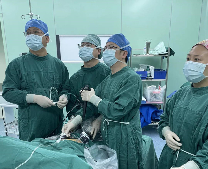 “該手術(shù)是腹腔鏡手術(shù)中的一種,手術(shù)全程在腹腔鏡下完成,切口小、創(chuàng)傷小?!? 蔡華杰主任和肝膽外科團(tuán)隊(duì)一起為周先生作充分的術(shù)前評(píng)估。