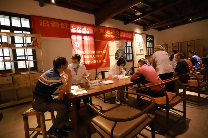在江山市大陳村,專家團(tuán)隊(duì)在私立萃文中學(xué)舊址設(shè)立義診點(diǎn),開展“學(xué)黨史、辦實(shí)事”大型義診活動(dòng)。一邊是健康宣教、測血壓、測血糖的護(hù)理專家團(tuán)隊(duì),另一邊是呼吸與危重癥醫(yī)學(xué)科、心血管內(nèi)科、內(nèi)分泌代謝病科等10多個(gè)??茍F(tuán)隊(duì),義診現(xiàn)場人潮涌動(dòng),一個(gè)半小時(shí)共接待前來咨詢的村民近百人次。