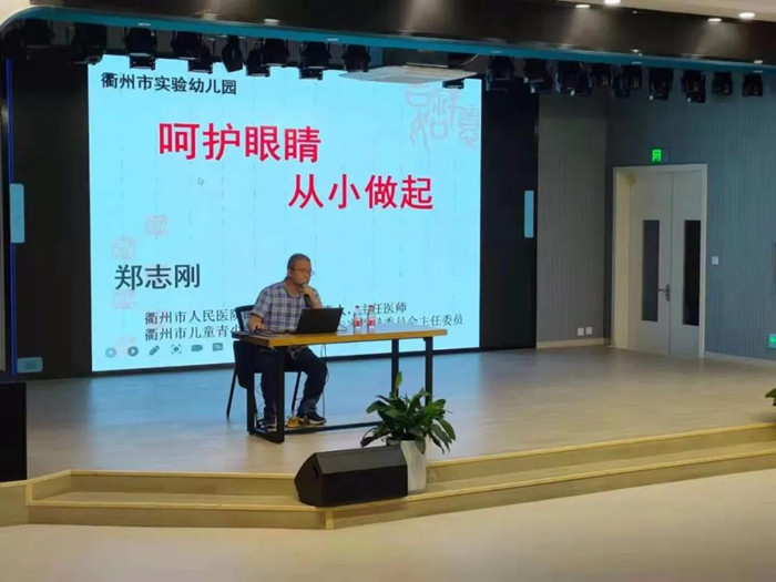 6月2日晚,鄭志剛來到衢州市實(shí)驗(yàn)幼兒園悅鑫府園區(qū),為120名小班的兒童和家長講述近視的成因?!?~6歲是兒童視力發(fā)育的關(guān)鍵期,需要家長和老師的共同關(guān)注,多參加戶外活動(dòng),遠(yuǎn)離電子產(chǎn)品,一旦發(fā)現(xiàn)視力異常,應(yīng)盡快到醫(yī)院進(jìn)行正規(guī)檢查?!鄙钊霚\出的講解得到現(xiàn)場聽眾的好評(píng)。