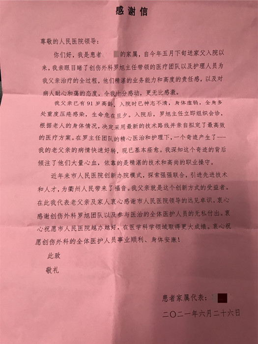感謝信(致創(chuàng)面修復(fù)科羅旭) 文章來(lái)源: 作者: 點(diǎn)擊數(shù):8619 更新時(shí)間:2021-06-30 上一篇: 感謝信(致心胸外科徐慧) 下一篇: 感謝信(致骨科一)