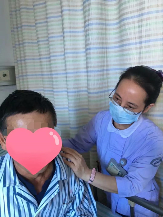 患者眼里的她不僅是一名優(yōu)秀的責任護士,還是一朵善解人意的“解語花”。為了全面了解患者的情況,盛紅娜經(jīng)常抽空跟患者聊天,疏導情緒,幫他們解壓?;颊咔榫w煩躁,她主動當“出氣筒”,久而久之,她成了患者的知心大姐。
