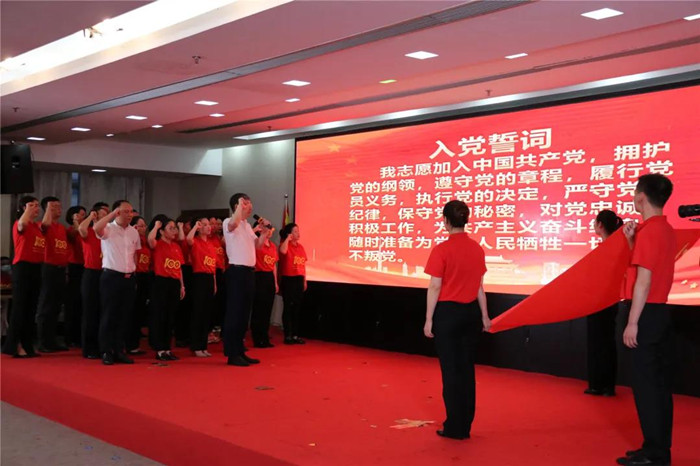 “我志愿加入中國共產(chǎn)黨,擁護黨的綱領(lǐng),遵守黨的章程……”25名新黨員在黨委書記陳成水的領(lǐng)誓下作入黨宣誓,這是一次精神的洗禮,也是鼓勁揚帆再出發(fā),鏗鏘有力的聲音久久回蕩。