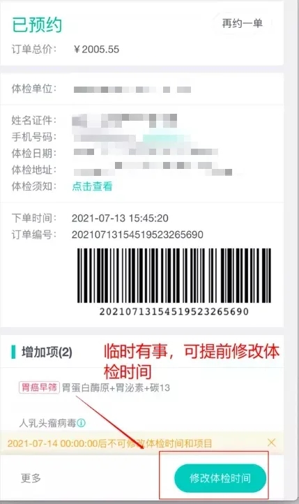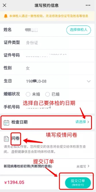 四、填寫(xiě)個(gè)人信息,選擇體檢時(shí)間