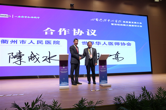 市人民醫(yī)院黨委書記陳成水與世界華人醫(yī)師協(xié)會副會長王向東簽訂戰(zhàn)略合作協(xié)議書
