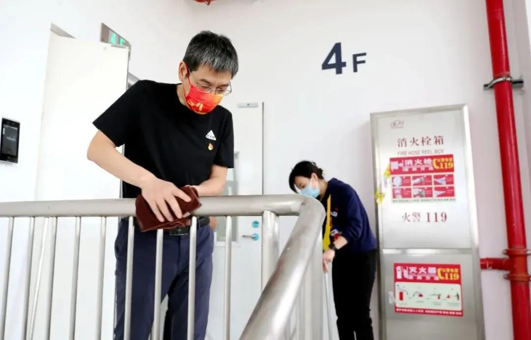 支部樹旗幟,黨員佩黨徽,讓黨旗飄揚起來,讓黨員身份亮起來,把集中攻堅氛圍營造起來。在新院各樓道、天臺以及各種衛(wèi)生死角,不怕臟、不怕累的黨員干部成為了一道風(fēng)景線。