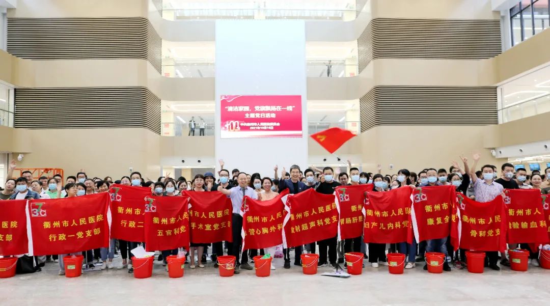 金色十月,秋高氣爽,黨旗飄揚,黨徽熠熠。10月16日,在閩江大道100號四省邊際中心醫(yī)院(衢州市人民醫(yī)院),一場“清潔家園,黨旗飄揚在一線”主題黨日活動正如火如荼地進行著。
