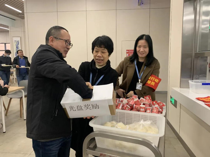 “我抽到了5個(gè)肉包子,真開心!”“免費(fèi)吃一餐,這個(gè)活動太有意思了!”“餐后一杯紅棗酸奶,工作也有了動力?!痹诔楠?jiǎng)活動現(xiàn)場,每一位“光盤”職工都笑容滿懷,享受著抽獎(jiǎng)的喜悅......