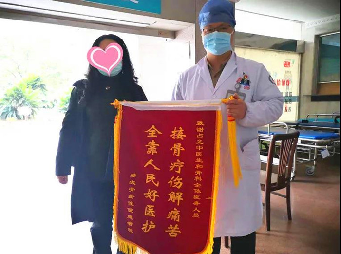 3月17日下午,一陣清脆的電話鈴聲在骨科七病區(qū)護(hù)士站響起,電話那頭的顧女士,要給骨科占允中醫(yī)師送錦旗,表達(dá)對(duì)骨科醫(yī)務(wù)人員的感謝。