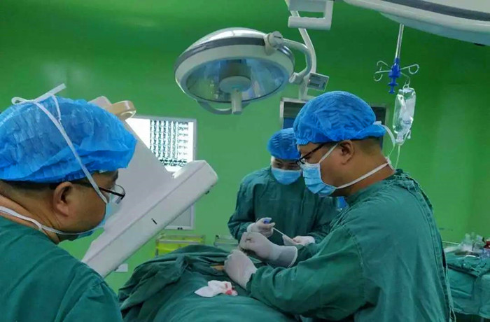 在占允中醫(yī)師的帶領(lǐng)下,骨科診療團(tuán)隊(duì)為老太太實(shí)施了微創(chuàng)手術(shù)----“經(jīng)皮球囊擴(kuò)張椎體后凸成形術(shù)”,短短30分鐘,手術(shù)順利完成。