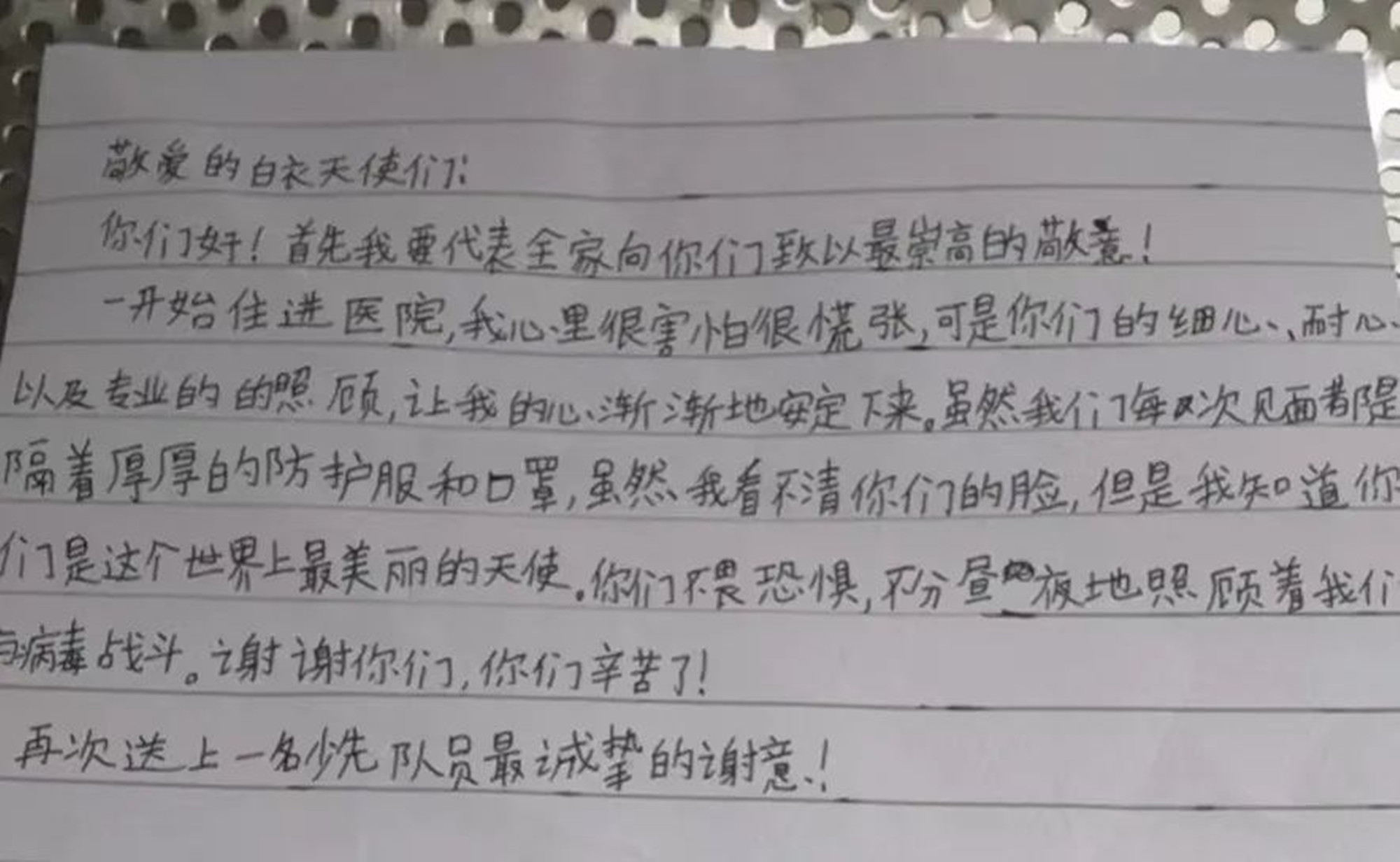 今天出院的小朋友還給醫(yī)護人員送來感謝信,感謝住院期間,白衣天使給予的關(guān)心和照顧。