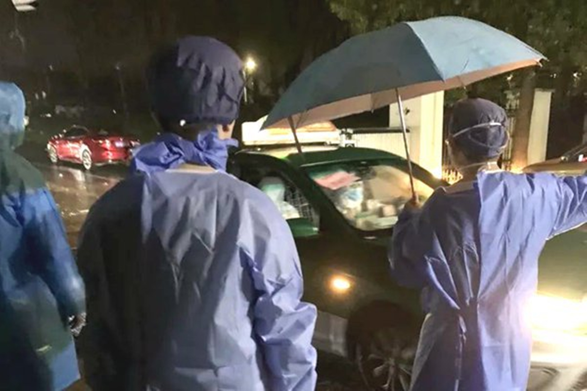 來自科教處的王歷輝就是其中的一員,他與同事將一箱又一箱的核酸采樣標本有序運往基地。傍晚,一場滂沱大雨讓人猝不及防,原本緊張忙碌的標本運送工作變得更加艱難。