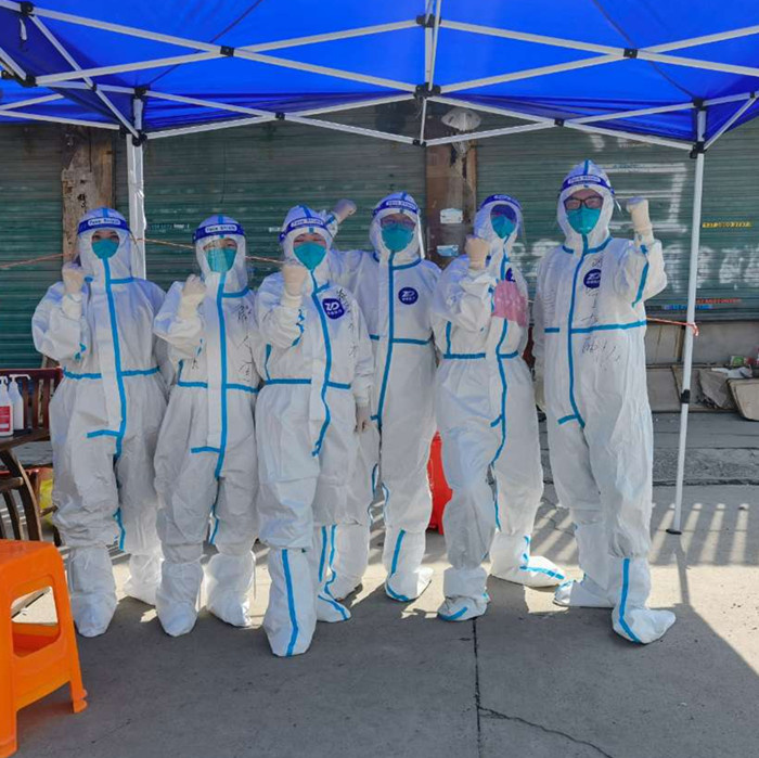4月的上海,天氣陰晴不定,穿著防護(hù)服、佩戴雙層手套、N95口罩、面罩、乳膠手套、防水靴套,“全副武裝”后,援滬采樣隊(duì)員們將連續(xù)奮戰(zhàn)5-6個(gè)小時(shí)。穿上紙尿褲是常態(tài),一天里面至少有10多個(gè)小時(shí)不吃、不喝、不拉,他們經(jīng)歷了烈日驕陽下的高溫酷暑以及氣溫急劇下降后的大風(fēng)大雨…….