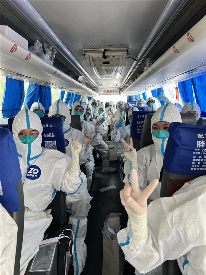 “疫情之下,每個(gè)人都有屬于自己的責(zé)任,作為醫(yī)務(wù)工作者敬畏生命,救死扶傷,義無反顧地沖在抗擊疫情的第一線,正是我們應(yīng)有的責(zé)任與擔(dān)當(dāng)?!蔽以杭o(jì)委書記曹敏作為此次援滬核酸采樣醫(yī)療隊(duì)的領(lǐng)隊(duì),她說:“愿疫情早日散去,所有美好接踵而至!”
