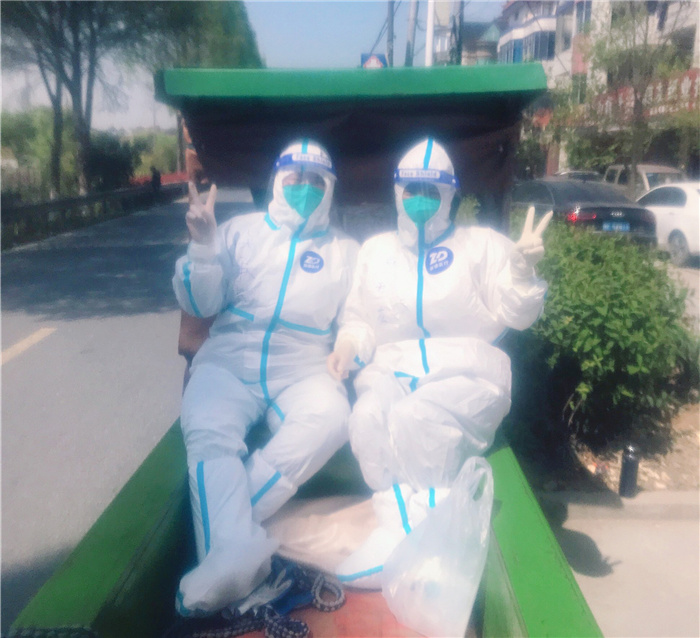 雖然十分辛苦,但衢醫(yī)“大白”們想著法子制造歡樂時(shí)光,為了爭(zhēng)取更多的采樣時(shí)間,“大白”們一起坐上“敞篷車”出發(fā)采核酸!