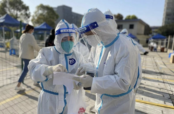 因社區(qū)干部、物業(yè)工作人員已經(jīng)隔離轉(zhuǎn)移,所有的志愿者都是小區(qū)內(nèi)的熱心業(yè)主自發(fā)組織。為確保采樣能按時(shí)完成,志愿者們按樓棟逐棟逐層掃樓,下樓的居民也都十分配合,有一家三口穿著雨衣下來的,也有著沖鋒衣戴帽子、手套全副武裝下來的,臨了,還不忘說一聲“大白,辛苦啦!”
