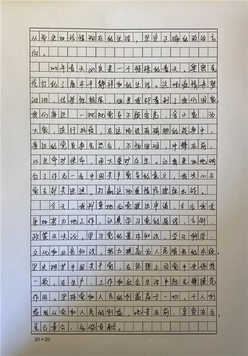 疫情當前,黨員同志沖鋒在前,危難時刻挺身而出,這種英勇奮斗的精神深深感染著每個人。當天,42名衢州市援滬醫(yī)療隊隊員有感而發(fā),在疫情一線寫下了入黨申請書,青年醫(yī)生楊子愷就是其中的一員。