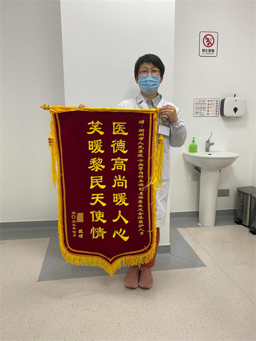 當衢城疫情起,王嬌和戰(zhàn)友奮戰(zhàn)在核酸采樣一線,任務結(jié)束返崗,得知80多歲的患者羅奶奶住院期間沒有子女陪伴,每次查房時,王嬌都會和老太太嘮嘮嗑?,F(xiàn)在,老太太已痊愈出院,昨天下午特意送來錦旗,感謝王嬌和心血管內(nèi)科醫(yī)護團隊的照顧。
