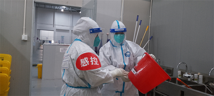 自從進入方艙,張翠琴每天對艙內區(qū)域進行院感督導、落實手衛(wèi)生、進行環(huán)境清潔消毒、監(jiān)督醫(yī)療垃圾處置、檢查搶救儀器和急救藥品……她仔細查看方艙醫(yī)院的院感風險點,最大限度地防止院感事件的發(fā)生?!吧瞎芴臁⑾鹿艿?,中間管空氣”張翠琴說,這是對院感人工作的比喻,她反復強調,“奧密克戎病毒來勢兇險,容不得一絲馬虎?!薄暗乇硪獫裢希苊鈿馊苣z感染。”